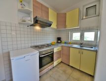 2-rums-lägenhet 40 m2 på 1. våningen, sydostläge. Vardags-/matrum 20 m2 med 1 bäddsoffa för 2 personer (140 cm, längd 200 cm), sat-TV (flatscreen TV), luftkonditionering. Utgång till balkongen. 1 rum med 1 fransk säng (160 cm, längd 200 cm). Utgång till balkongen. Öppet kök (4 kokplattor, ugn). Dusch/toalett, massage-dusch. Luftkonditionering (extra). Balkong 6 m2, liten balkong 2 m2. Balkongmöbler. Vidsträckt utsikt på havet. Till förfogande: Internet (Trådlös LAN [WLAN] , gratis). Parkeringsplats (1 Bil).- Utrustning