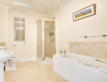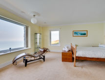 3-rums-stuga. Rymlig och ljus, komfortabelt och smakfullt: öppet vardagsrum med TV, flatscreen TV och DVD. 1 dubbelrum med 1 dubbelsäng och badkar/dusch/toalett. 1 dubbelrum med 1 dubbelsäng. Öppet kök (4 kokplattor, ugn, diskmaskin, mikrovågsugn, frys) med matbord. Badkar/dusch/toalett. Uppvärmning. Vacker utsikt på havet. Till förfogande: tvättmaskin, torktumlare. Internet (Trådlös LAN [WLAN] , gratis). Notera: rökfritt hus.- Kännetecken för boendet