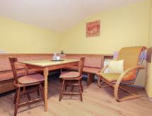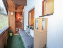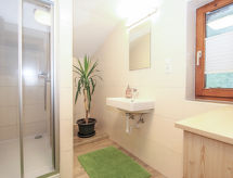 3-rums-lägenhet 55 m2 på 2. våningen. Delvis sluttande tak, mysigt inredd: ingång. 1 rum med 1 bäddsoffa, 1 dubbelsäng och handfat. Utgång till balkongen. 1 dubbelrum med handfat. Utgång till balkongen. Kombinerat kök och vardagsrum (ugn, diskmaskin, 4 kokplattor - glaskeramikhäll) med matvrå och sat-TV (flatscreen TV), radio. Dusch, sep. Toalett. Balkong, stor terrass täckt. Terrassmöbler, utegrill, vilstolar. Härlig panoramautsikt på bergen och dalen. Till förfogande: Internet (Trådlös LAN [WLAN] , gratis). Notera: privat entré, privat entré.- Utrustning