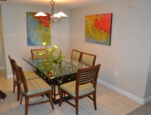 Fort Myers Beach: Det här fantastiska residenset med 66 lägenheter ligger i öns södra del luxuöst residens "Gullwing Beach Resort", med 12 våningar, byggnadsår 2000, renoverat. Lugnt, soligt läge, direkt vid stranden. För gemensamt bruk: pool (15 x 8 m, tillgång säsongsbunden: 01.Jan. - 31.Dec.) med innertrappor. Dusch/toalett i poolområdet, bubbelbad, tennis (1 x hårdbeläggning), utegrill. I huset: reception, gym, hiss. Hushållshjälp dagligen (extra). Parkering. Affär 1 km, livsmedelsaffär 2 km, restaurang 1 km. Närbelägna sevärdheter: Sanibel Island, Naples, Marco Island. Notera: fordon rekommenderas. Lämplig för barnfamiljer. I denna semesteranläggning finns det fler bostäder att hyra. Trädgårdspaviljong för pickninck, bubbelbad. Hemhjälp USD 40/städning, betalas på orten. Vattensport och sevärdheter i närheten. Notera: min. 7 nätters bokningar under jul-nyår och påsken. Min. 4 nätters vistelser från 03.01 till 21.04.Interior