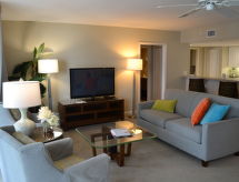 Fort Myers Beach: Det här fantastiska residenset med 66 lägenheter ligger i öns södra del luxuöst residens "Gullwing Beach Resort", med 12 våningar, byggnadsår 2000, renoverat. Lugnt, soligt läge, direkt vid stranden. För gemensamt bruk: pool (15 x 8 m, tillgång säsongsbunden: 01.Jan. - 31.Dec.) med innertrappor. Dusch/toalett i poolområdet, bubbelbad, tennis (1 x hårdbeläggning), utegrill. I huset: reception, gym, hiss. Hushållshjälp dagligen (extra). Parkering. Affär 1 km, livsmedelsaffär 2 km, restaurang 1 km. Närbelägna sevärdheter: Sanibel Island, Naples, Marco Island. Notera: fordon rekommenderas. Lämplig för barnfamiljer. I denna semesteranläggning finns det fler bostäder att hyra. Trädgårdspaviljong för pickninck, bubbelbad. Hemhjälp USD 40/städning, betalas på orten. Vattensport och sevärdheter i närheten. Notera: min. 7 nätters bokningar under jul-nyår och påsken. Min. 4 nätters vistelser från 03.01 till 21.04.Interior