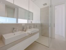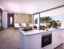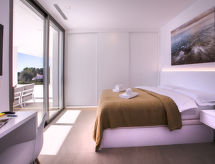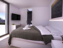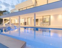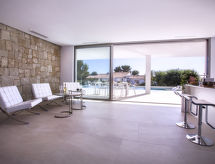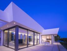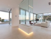 Mycket stor, mycket modern, mycket luxuös villa "Halcon al Mar", med 2 våningar, byggnadsår 2021. I orten Jávea - Balcón al Mar, lugnt, soligt läge, 1 km från havet, 3.5 km från stranden. För privat bruk: tomt med gräsmatta och träd, vacker trädgård för avkoppling, pool kantig, uppvärmd (12 x 4 m, 100 - 200 cm djup, tillgång säsongsbunden: 01.Jan. - 31.Dec.) med innertrappor. Utedusch, sittplats (190 m2), trädgårdsmöbler, utegrill. I huset: hiss, centralvärme, luftkonditionering. Parkering på tomten, privat garage. Laddstation för elbil. Stormarknad 600 m, restaurang 400 m, sandstrand "El Arenal" 6 km, stenstrand "Cala Granadella" 4.8 km, strand vid klippor "Cala Portitxol - La Barraca" 3.5 km. Sporthamn 6 km, golfbana 10 km, surfskola 3.5 km, seglarskola 3.5 km, tennis 600 m. Ägaren accepterar inga ungdomsgrupper.Interior