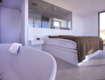 "Villa Halcon al Mar", 6-rums-villa 460 m2 med 2 våningar. Rymlig och ljus, mycket modernt och luxuöst inredd: vardagsrum med öppen spis, sat-TV, luftkonditionering och varmluftsuppvärmning. Utgång till terrassen. Matrum med luftkonditionering och varmluftsuppvärmning. Utgång till terrassen. Bagagerum. 1 rum med 1 fransk säng (200 cm, längd 200 cm), badkar, dusch/toalett, dubbelt handfat, luftkonditionering och varmluftsuppvärmning. Utgång till terrassen. Stort, öppet kök (ugn, diskmaskin, 4 Induktionshäll, brödrost, vattenkokare, frys, elektrisk kaffemaskin, kombinerad mikrovågsugn) med bar, matbord. Utgång till terrassen. Sep. Toalett. Golvvärme. Nedre våning: 1 rum med 1 fransk säng (200 cm, längd 200 cm), dusch/toalett, sat-TV, luftkonditionering och varmluftsuppvärmning. Utgång till trädgårdssittplatsen, till swimmingpoolen. 1 rum med 1 fransk säng (160 cm, längd 200 cm), dusch/toalett, sat-TV, luftkonditionering och varmluftsuppvärmning. Utgång till trädgårdssittplatsen, till swimmingpoolen. 1 rum med 1 fransk säng (160 cm, längd 200 cm), sat-TV, luftkonditionering och varmluftsuppvärmning. Utgång till trädgårdssittplatsen, till swimmingpoolen. Bagagerum med handfat. Utgång till terrassen. Öppet kök (2 Induktionshäll, mikrovågsugn, elektrisk kaffemaskin). Sep. Toalett. Golvvärme. Stor terrass 190 m2, stor terrass 160 m2, stor trädgård, gräsmatta. Terrassmöbler, utegrill, vilstolar, loggia. Härlig panoramautsikt på havet och landskapet. Till förfogande: tvättmaskin, torktumlare, strykjärn, hög barnstol, barnsäng, hårtork. Internet (DSL/LAN, gratis). Parkeringsplats (3 Bilar), garage. Laddstation för elbil. VT-488279-A- Aktiviteter i närheten