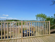 3-rums-stuga med 2 våningar. Komfortabelt: vardags-/matrum med TV (flatscreen TV), CD och DVD. Kök (4 kokplattor, ugn, mikrovågsugn, frys) med matbord. Sep. Toalett. Övre våning: 1 rum med 1 dubbelsäng och TV. 1 rum med 2 sängar. Badkar/dusch/toalett. Gasuppvärmning. Terrass, trädgårdssittplats. Terrassmöbler. Panoramautsikt på floden och viken. Till förfogande: tvättmaskin. Internet (Trådlös LAN [WLAN] , gratis). Garage. Notera: rökfritt hus.- Kännetecken för boendet