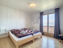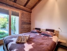 "Haoupa", 5-rums-chalet 150 m2 med 2 våningar. Rustikt och smakfullt inrett: vardagsrum. Utgång till trädgården. 1 stort rum med 1 fransk säng (180 cm, längd 200 cm), dusch/toalett. Stort, öppet kök (ugn, diskmaskin, 4 kokplattor - glaskeramikhäll, brödrost, vattenkokare, frys, elektrisk kaffemaskin, Kapslar till kaffemaskin (Nespresso) extra, raclettegrill). Utgång till trädgården. Sep. Toalett. Övre våning: 2 rum, till varje rum hör 2 sängar (90 cm, längd 190 cm). Utgång till balkongen. 1 rum med 1 x 2 våningssängar (90 cm, längd 190 cm). Utgång till balkongen. Dusch/toalett. Stor balkong, sydläge och västläge, trädgård, sydläge och västläge. Terrassmöbler. Mycket vacker panoramautsikt på bergen och dalen. Till förfogande: tvättmaskin. Internet (Trådlös LAN [WLAN] , gratis). Parkeringsplats (4 Bilar). Notera: rökfri lägenhet.- Utrustning