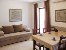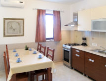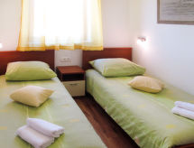 "Banko (PUL408)", 3-rums-lägenhet 55 m2, på bottenvåningen. Vardags-/matrum med 1 bäddsoffa för 2 personer (160 cm, längd 190 cm), sat-TV och luftkonditionering. Utgång till terrassen. 1 rum med 2 sängar. 1 rum med 1 fransk säng (160 cm, längd 200 cm). Öppet kök (1 kokplatta, ugn, 3 gasflammor, brödrost, vattenkokare, mikrovågsugn, elektrisk kaffemaskin). Dusch/toalett. Luftkonditionering (extra). Terrass 15 m2 täckt. Terrassmöbler, vilstolar (2). Till förfogande: tvättmaskin. Internet (Trådlös LAN [WLAN] , extra). Notera: rökfritt hus. Max 1 husdjur/hund tillåtet.- Utrustning