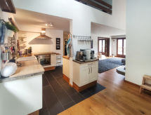 5-rums-hus 220 m2. Objekt passande för 6 vuxna + 1 barn. Rymlig och ljus, renoverat år 2021, mycket modernt och smakfullt inrett: öppet stort vardags-/matrum med öppen spis, matbord, dusch/toalett och eluppvärmning. Utgång till trädgården, till terrassen, till trädgårdssittplatsen. Öppet vardagsrum med kabel-TV och flatscreen TV. 1 dubbelrum med 1 dubbelsäng (180 cm, längd 200 cm). 1 stort dubbelrum med 1 fransk säng (2 x 100 cm, längd 200 cm). Stort, öppet kök (ugn, diskmaskin, 4 kokplattor - glaskeramikhäll, brödrost, vattenkokare, frys, grill, elektrisk kaffemaskin, Kapslar till kaffemaskin (Kolbenkaffemaschine) extra, raclettegrill, fondueset (chinoise, ost )) med matbord. Utgång till terrassen. Eluppvärmning. Nedre våning: 1 rum med 2 sängar (90 cm, längd 200 cm), sep. toalett och dusch. Trägolv. Terrass 30 m2. Terrassmöbler. Till förfogande: bastu. Internet (Trådlös LAN [WLAN] , gratis). Parkeringsplats (2 Bilar), garage på tomten (1 Bil). Notera: lämpligt för barnfamiljer. Rökfri lägenhet. 1 husdjur/hund tillåtet.- Utrustning