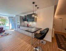 Modernt, vackert flerfamiljshus "Panorama Apartments Ehrmann", med 3 våningar, renoverat år 2022. 6 lägenheter i fastigheten. I ortsdelen Schüttdorf 2 km från centrumet av Zell am See, villaområde, område med lite trafik, 100 m från sjön. För gemensamt bruk: tomt (inhägnad). I huset: skidförråd, centralvärme, tork för pjäxor. Parkering på tomten. Laddstation för elbil. Stormarknad 1 km, köpcentrum 2 km, bageri, busshållplats 500 m, badsjö "Strandbad Seespitz" 100 m. Golfbana (36 hål) 6 km, sportcentrum 20 m, cykelled 100 m, kabinlift 1.5 km. Välkända skiddestinationer nås enkelt: Schmittenhöhe 1.5 km, Gletscherschigebiet Kitzsteinhorn 7 km, Familienberg Maiskogel 7 km. Ägaren accepterar inga ungdomsgrupper. Residens med elektriska grindar. Nyckelöverlämningen sker på kontoret Böhm i Schüttdorf.Interior
