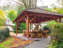 Modernt flerfamiljshus "Haus Wildstein", omgiven av träd och ängar. I ortsdelen Bad Wildstein, i utkanten, 4.5 km från centrumet av Traben-Trarbach, lugnt läge i en sluttning, 10 m från skogsbrynet, 3 m från bäcken. För gemensamt bruk: park 43'000 m2, stor, välskött trädgård, naturtomt 1 ha. Bordtennis, sittplats, grillstuga, barnlekplats (gunga). I huset: hiss, solterrass, centralvärme. Byte av sängkläder 1 gånger i veckan. Byte av handdukar 1 gånger i veckan. Parkering vid huset. Affär 4 km, livsmedelsaffär 4 km, stormarknad 4 km, köpcentrum 5 km, restaurang 2.8 km, bar 4.5 km, bageri 1.3 km, café 2.8 km, cykeluthyrning 6 km, busshållplats "Traben-Trarbach" 2.5 km, järnvägsstation "Traben-Trarbach" 4.5 km, utomhusbad 1 km, simhall 1 km, bad med varma källor 1 km. Golfbana (11 hål) 12 km, tennis 1 km, minigolf 600 m, ridstall 10 km, vandringsleder från huset 50 m, lekplats 2.7 km. Närbelägna sevärdheter: Weinregion Mosel, Nationalpark Saar-Hunsrück. Välkända skiddestinationer nås enkelt: Erbeskopf 21 km. Välkända sjöar nås enkelt: Pulvermaar 25 km. Notera: fordon rekommenderas.Interior
