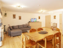 2-rums-lägenhet 90 m2, på bottenvåningen. Smakfullt och mysigt inredd: vardags-/sovrum 39 m2 med 1 bäddsoffa för 2 personer (140 cm, längd 200 cm), 1 väggsäng (90 cm, längd 200 cm), sat-TV (flatscreen TV), DVD. Utgång till balkongen, till terrassen. 1 rum 23 m2 med 1 dubbelsäng (180 cm, längd 200 cm), 1 skåpsäng (90 cm, längd 200 cm), sat-TV (flatscreen TV). Utgång till balkongen. Kokvrå (ugn, diskmaskin, 4 kokplattor - glaskeramikhäll, brödrost, vattenkokare, elektrisk kaffemaskin). 2 badkar/toaletter, bubbelbad. Balkong 12 m2, terrass 6 m2, täckt. Terrassmöbler, balkongmöbler. Till förfogande: tvättmaskin. Internet (Trådlös LAN [WLAN] , gratis). Notera: rökfri lägenhet. Max 2 husdjur/hundar tillåtna. Brandvarnare, brandsläckare.- Utrustning