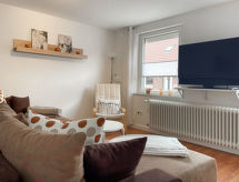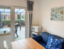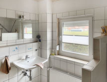Enfamiljshus "Hexenhuus". I orten, 700 m, 11 km från havet, 11 km från stranden, i en återvändsgränd. För privat bruk: trädgård med gräsplan. Utegrill. I huset: cykelförråd, centralvärme. Till förfogande: cyklar (4). Parkering vid huset. Carport. Stormarknad 600 m, restaurang 700 m, bageri 600 m, café, busshållplats 700 m, järnvägsstation "Norden" 6 km, sandstrand 11 km, park "Lütetsburger Schlosspark" 3 km, utomhusbad 3 km, simhall 3 km. Golfbana (9 hål) 3 km, surfskola 11 km.Interior