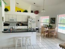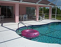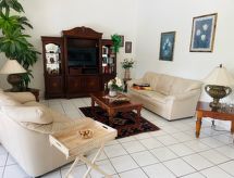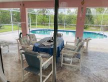 Bonita Springs: Mycket vacker villa "Hibiscus", byggnadsår 1996. I ortsdelen Bell Villa, i utkanten, lugnt, soligt läge, 16 km från havet, direkt vid kanalen. För privat bruk: tomt 3'960 m2, välskött trädgård med blommor och träd, pool uppvärmd (8 x 5 m, tillgång säsongsbunden: 01.Jan. - 31.Dec.) med innertrappor. I huset: biljard. Privat garage. Affär 4 km, livsmedelsaffär 4 km, sandstrand 8 km. Golfbana 4 km.Interior