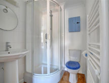 4-rums-stuga med 3 våningar. Rymlig och ljus, komfortabelt och smakfullt: öppet vardagsrum med TV, flatscreen TV och DVD. Öppet kök (4 kokplattor, ugn, diskmaskin, mikrovågsugn, frys) med matbord. Övre våning: 2 rum, till varje rum hör 2 sängar och dusch/toalett. 2:a våningen 1 dubbelrum med 1 dubbelsäng och dusch/toalett. Uppvärmning. Terrassmöbler. Till förfogande: tvättmaskin, torktumlare, hårtork. Internet (Trådlös LAN [WLAN] , gratis). Notera: rökfritt hus. Max 1 husdjur/hund tillåtet.- Utrustning