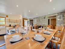 Ganllwyd 9 km från Dolgellau: Stort, luxuöst hus "Hideaway", med 2 våningar, fristående. I utkanten, avskilt, lugnt läge, direkt vid skogsbrynet, 300 m från floden, i det gröna. För privat bruk: trädgård med gräsmatta. Trädgårdsmöbler, utegrill. I huset: cykelförråd. Parkering vid huset. Affär 10 km, livsmedelsaffär 7 km, restaurang 7 km, bar 7 km, järnvägsstation "Dolgellau" 9 km, sandstrand "Harlech Beach" 24 km. Golfbana (18 hål) 13 km. Närbelägna sevärdheter: Coed y Brenin Forest Park 3 km, Mawddach Estuary and Woodlands Reserve 1 km, Trawsfynydd Lake 10 km, National White Water Centre 30 km. Vandringsområden Snowdonia National Park 500 m. Notera: fordon rekommenderas.Interior