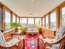 4-rums-stuga med 2 våningar. Vackert och stiligt: vardagsrum med sat-TV (flatscreen TV), DVD och vedugn. Stort kök (4 kokplattor, ugn, diskmaskin, mikrovågsugn, frys) med matbord. Dusch/toalett. Golvvärme. Övre våning: 1 stort rum med 1 säng, 1 dubbelsäng och 1 utdragbar säng. Utgång till balkongen. 1 rum med 2 sängar. 1 rum med 1 säng och 1 dubbelsäng. Dusch/toalett, badkar/dusch/toalett. Uppvärmning. Trädgård. Utegrill, vinterträdgård. Vacker utsikt på bergen och landskapet. Till förfogande: tvättmaskin. Internet (Trådlös LAN [WLAN] , gratis). Notera: rökfritt hus. 5 husdjur/hundar tillåtna. TV bara EN.- Utrustning