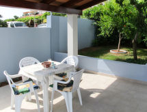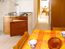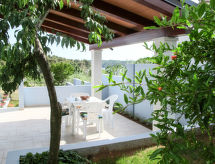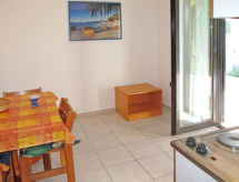 "Hula (PUL245)", 1-rums-lägenhet 22 m2, på bottenvåningen. Studio med 2 sängar, matbord, sat-TV och luftkonditionering. Utgång till terrassen. Öppet kök (2 kokplattor, elektrisk kaffemaskin). Dusch/toalett. Luftkonditionering, varmluftsuppvärmning (extra). Terrass 20 m2. Terrassmöbler. Utsikt på havet. Till förfogande: Internet (Trådlös LAN [WLAN] , extra). Notera: rökfritt hus. Max 1 husdjur/hund tillåtet.- Utrustning