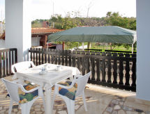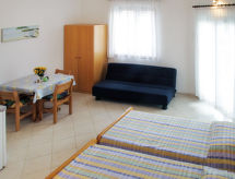 "Hula (PUL246)", 1-rums-lägenhet 24 m2, på bottenvåningen. Studio med 2 sängar, matbord, sat-TV och luftkonditionering. Utgång till terrassen. Öppet kök (2 kokplattor, elektrisk kaffemaskin). Dusch/toalett. Luftkonditionering, varmluftsuppvärmning (extra). Terrass 12 m2, täckt. Terrassmöbler. Utsikt på havet. Till förfogande: Internet (Trådlös LAN [WLAN] , extra). Notera: rökfritt hus. Max 1 husdjur/hund tillåtet.- Utrustning