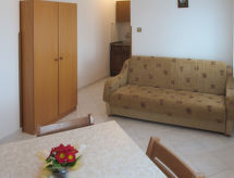 "Hula (PUL249)", 2-rums-lägenhet 31 m2 på 1. våningen. Vardags-/matrum med 1 bäddsoffa för 2 personer (160 cm, längd 200 cm), sat-TV och luftkonditionering. 1 rum med 2 sängar. Utgång till balkongen. Öppet kök (2 kokplattor, elektrisk kaffemaskin). Dusch/toalett. Luftkonditionering, varmluftsuppvärmning (extra). Balkong. Balkongmöbler. Utsikt på havet. Till förfogande: Internet (Trådlös LAN [WLAN] , extra). Max 1 husdjur/hund tillåtet.- Utrustning