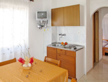 "Hula (PUL251)", 1-rums-lägenhet 22 m2, på bottenvåningen över marknivå. Studio med 2 sängar, matbord, sat-TV och luftkonditionering. Utgång till balkongen. Kök (2 kokplattor, elektrisk kaffemaskin). Dusch/toalett. Luftkonditionering, varmluftsuppvärmning (extra). Balkong 6 m2. Balkongmöbler. Utsikt på havet. Till förfogande: Internet (Trådlös LAN [WLAN] , extra). Notera: rökfritt hus. Max 1 husdjur/hund tillåtet.- Utrustning