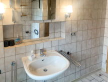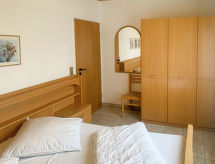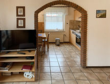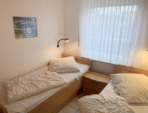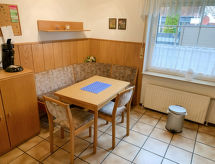 3-rums-lägenhet 64 m2, på bottenvåningen. Mysigt inredd: vardags-/matrum med sat-TV (flatscreen TV), radio och CD. Utgång till terrassen. 1 rum med 1 dubbelsäng (2 x 90 cm, längd 200 cm). 1 rum med 2 sängar (90 cm, längd 200 cm). Kokvrå (diskmaskin, 4 kokplattor - glaskeramikhäll, brödrost, vattenkokare, mikrovågsugn, elektrisk kaffemaskin). Dusch/toalett. Terrassmöbler, utegrill (flyttbar). Till förfogande: hög barnstol (extra). Internet (Trådlös LAN [WLAN] , gratis). Notera: rökfri lägenhet. Brandvarnare.- Utrustning