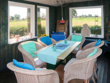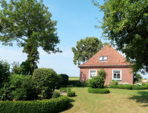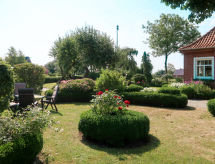 2-familjshus "Huuske am Polder", fristående. I ortsdelen Ditzumerhamrich 4 km från centrumet av Ditzum, 4 km från havet. För gemensamt bruk: tomt 1'400 m2 (inhägnad), vacker, välskött trädgård med gräsmatta och träd. Berså, trädgårdsmöbler. I huset: centralvärme, cyklar tillgängliga. Parkering (för 2 bilar, täckt) vid huset. Affär 3 km, stormarknad 4 km, järnvägsstation "Leer" 18 km, färja "Ditzum" 5.5 km, sandstrand "Norddeich" 88 km, simhall 20 km, badsjö "Soltborg" 12 km. Dollart 4 km.Interior
