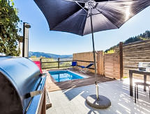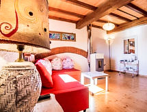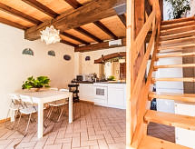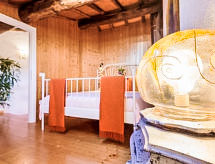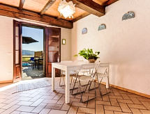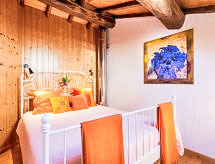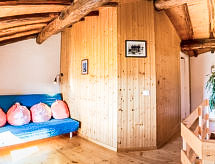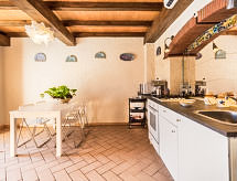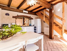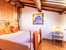 "I Ciliegi", 3-rums-radhus 80 m2 med 3 våningar, på övervåningen. Praktiskt och smakfullt inrett: stort vardagsrum med panoramafönster med 1 bäddsoffa för 2 personer och TV (flatscreen TV), kamin. Dusch/bidé/toalett. Eluppvärmning, veduppvärmning. Nedre våning: kök (4 kokplattor, ugn, mikrovågsugn, frys, elektrisk kaffemaskin) med matbord. Utgång till terrassen, till swimmingpoolen. Övre våning: öppet vardagsrum med panoramafönster med 1 bäddsoffa för 2 personer. 1 dubbelrum. Parkettgolv. Utegrill. Vacker panoramautsikt på bergen. Till förfogande: tvättmaskin, hårtork. Internet (Trådlös LAN [WLAN] ). 1 husdjur/hund tillåtet. 046017LTN1183- Utrustning