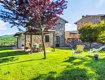 "I Lecci", 4-rums-hus 127 m2 med 2 våningar. Rymlig, komfortabelt och smakfullt inrett: stort vardags-/sovrum med 1 bäddsoffa för 2 personer (130 cm), sat-TV (flatscreen TV). Utgång till trädgården. 1 rum med 1 fransk säng (140 cm, längd 190 cm). Utgång till trädgården. Kök (4 kokplattor, diskmaskin, mikrovågsugn). Utgång till trädgården. Badkar/bidé/toalett. Övre våning: 1 rum med 1 fransk säng (140 cm, längd 190 cm). 1 dubbelrum (160 cm, längd 190 cm). Badkar/bidé/toalett. Trädgård. Terrassmöbler, utegrill (flyttbar). Begränsad panoramautsikt på dalen. Till förfogande: tvättmaskin, kassaskåp. Internet (Trådlös LAN [WLAN] , gratis). Lämpligt för barnfamiljer. 1 husdjur/hund tillåtet.- Utrustning