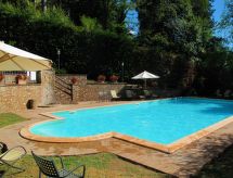 Vackert, komfortabelt residens "Il Borgo", renoverat, omgiven av träd och vingårdar. 7 lägenheter i residenset. I den lilla byn Montalbino 6 km från centrumet av Montespertoli, 13 km från centrumet av Certaldo, 25 km från centrumet av San Gimignano, i det gröna. För gemensamt bruk: tomt 5'000 m2 (inhägnad) med äng, pool inhägnad (8 x 12 m, 140 - 140 cm djup, tillgång säsongsbunden: 20.Maj. - 30.Sep. poolen är öppen under följande tider: mellan kl 07:30-19:30) med innertrappor. Dusch/toalett i poolområdet, terrass, trädgårdsmöbler, utegrill, parkering på tomten, allmän parkering 30 m. Affär 5 km, livsmedelsaffär 5 km, stormarknad 5 km, restaurang 50 m, bageri 5 km, cykeluthyrning 5 km, järnvägsstation "Certaldo" 13 km, sandstrand "Calambrone" 80 km, simhall 13 km. Golfbana (9 hål) 20 km, tennis 5 km, ridstall 11 km. Närbelägna sevärdheter: Firenze 40 km, Siena 53 km, Volterra 55 km, Pisa 78 km. Notera: fordon rekommenderas. Lämplig för barnfamiljer, babyutrustning (inkl.). Tonårsgrupper endast på förfrågan. Alla hus/lägenheter är individuellt inredda.Interior