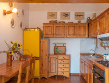 "Il Muto", 3-rums-ena hälften av ett parhus 60 m2. Praktiskt inredd: vardagsrum med TV och luftkonditionering. Utgång till terrassen. 1 dubbelrum. 1 litet dubbelrum. Öppet kök (4 kokplattor, ugn, frys). Dusch/bidé/toalett. Terrass täckt. Terrassmöbler, utegrill. IUN:- Utrustning