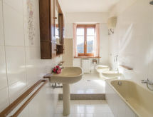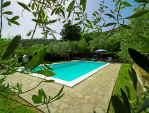 7-rums-villa 500 m2 med 2 våningar. Komfortabelt och rustikt inredd: vardagsrum med öppen spis. Utgång till trädgården. Vardagsrum med sat-TV (flatscreen TV). Utgång till trädgården. 1 rum med 1 bäddsoffa för 2 personer, dusch/bidé/toalett och TV. Utgång till trädgården, till loggian. Kök (4 kokplattor, ugn, diskmaskin, mikrovågsugn, frys) med öppen spis och matbord. Utgång till trädgården, till loggian. Övre våning: 2 dubbelrum, till varje rum hör, luftkonditionering. 1 rum med 2 sängar och luftkonditionering. 1 rum med 2 sängar och luftkonditionering. Utgång till verandan. Badkar/bidé/toalett, dusch/bidé/toalett. Oljeuppvärmning (extra). Uppvärmning endast tillgängligt från 15.10. till 15.04. Mycket vacker, på sjön, dalen och landskapet. Till förfogande: tvättmaskin, myggnät, hårtork. Internet (Trådlös LAN [WLAN] ). 1 husdjur/hund tillåtet.- Kännetecken för boendet