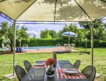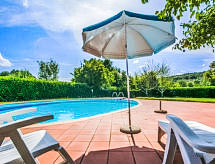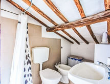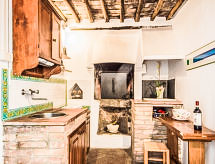 "Il Valacchio", 3-rums-hus 45 m2 med 2 våningar, på bottenvåningen. Mycket enkelt och rustikt inrett: litet kök (2 kokplattor) med matbord. Övre våning: litet vardagsrum. 1 dubbelrum. 1 rum med 1 x 2 våningssängar. Dusch/bidé/toalett. Gasuppvärmning.- Utrustning