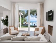 Modern, komfortabel semesteranläggning "Kappa Resort". I ortsdelen Tsagkari Pigadi 4 km från centrumet av Paliouri, lugnt, soligt läge, 220 m från havet, 220 m från stranden. För gemensamt bruk: privatstrand. För privat bruk: vacker, välskött trädgård med blommor och träd, gräsplan, pool kantig (38 m2, tillgång säsongsbunden: 25.Apr. - 22.Okt.). I anläggningen: restaurang. Byte av sängkläder 2 gånger i veckan. Byte av handdukar dagligen. Städning dagligen. Frukost och halvpension möjligt på förfrågan (extra). Parkering vid huset. Livsmedelsaffär 4 km, stormarknad 4 km, restaurang 1.9 km, bar 1.9 km, bageri 4 km, café 250 m, sandstrand "Tsagkari Pigadi" 220 m. Ridstall 30.4 km. Närbelägna sevärdheter: Possidi Lighthouse 37.1 km, CrazyLand Waterpark 9.3 km, Stavronikita (Sani) Tower 50.8 km, Temple of Ammon Zeus 32.1 km, Poseidon Temple 36.7 km, Saint Paul's Byzantine Tower 39.2 km. Notera: fordon rekommenderas. Babyutrustning på förfrågan (inkl.). Tonårsgrupper endast på förfrågan. Bilden är bara ett exempel på ett hus.Interior