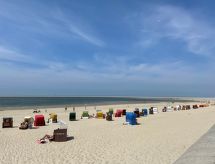 Vackert hyreshus. I orten, centralt läge, 900 m från havet, 900 m från stranden. I huset: centralvärme. Livsmedelsaffär 450 m, restaurang 25 m, bageri 300 m, café 30 m, cykeluthyrning 10 m, spårvagn "Inselbahn Borkum" 300 m, färja "Borkum" 6.4 km, sandstrand, simhall 900 m. Tennis 1 km, ridstall 1.5 km. Närbelägna sevärdheter: Alter Leuchtturm 80 m, Neuer Leuchtturm 600 m, Nationalpark-Feuerschiff Borkumriff 6 km, Musikpavillion 950 m, Heimatmuseum 40 m.Interior