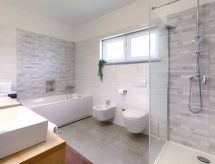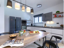 Modern villa "Irena", med 2 våningar. 1 km från centrumet av Medulin, 500 m från havet, 500 m från stranden. För privat bruk: tomt 1'000 m2 (inhägnad), trädgård med gräsmatta, pool kantig, uppvärmd (8 x 4 m, 140 cm djup, tillgång säsongsbunden: 01.Apr. - 01.Nov.) med innertrappor. Utedusch. I huset: internetanslutning, tvättmaskin. Tillfart ända fram till till huset (500 m naturväg). Parkering (för 4 bilar) vid huset på tomten. Affär, stormarknad 800 m, restaurang 1 km, sandstrand 2 km, strand vid klippor 500 m. Ägaren accepterar inga ungdomsgrupper. Pool uppvärmd (extra). Vänligen meddela, minst 7 dagar innan ankomst, om poolvärme önskas.Interior