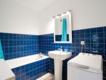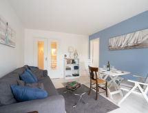 2-rums-lägenhet 46 m2, på bottenvåningen, sydläge. Vardags-/matrum med 1 bäddsoffa för 2 personer (160 cm, längd 200 cm), TV (flatscreen TV), radio och elektrisk fönsterlucka. Utgång till trädgården. 1 rum med 2 sängar (80 cm, längd 190 cm). Utgång till trädgården. Kök (ugn, 3 kokplattor - glaskeramikhäll, brödrost, vattenkokare, mikrovågsugn, elektrisk kaffemaskin). Badkar, sep. Toalett. Trädgård 40 m2. Utsikt på orten. Till förfogande: tvättmaskin. Internet (Trådlös LAN [WLAN] , extra). Garage nr 3. Notera: brandvarnare.- Kännetecken för boendet