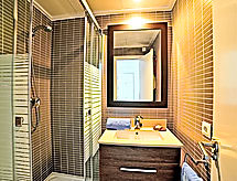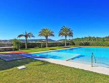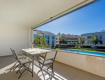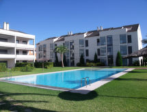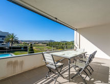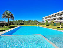 3-rums-lägenhet 75 m2 på 1. våningen. Rymlig och ljus, mycket komfortabelt och smakfullt inredd: vardags-/matrum med digital-TV och luftkonditionering. Utgång till terrassen. 1 rum med 2 sängar och luftkonditionering. 1 rum med 1 fransk säng (2 x 150 cm), badkar/bidé/toalett och luftkonditionering. Utgång till terrassen. Kök (ugn, diskmaskin, 4 kokplattor - glaskeramikhäll, mikrovågsugn, frys, elektrisk kaffemaskin). Dusch/toalett. Luftkonditionering, varmluftsuppvärmning. Stor terrass 18 m2. Terrassmöbler. Vacker utsikt på swimming-poolen. Till förfogande: tvättmaskin. Internet (Trådlös LAN [WLAN] , gratis). Garage nr 24. Notera: rökfri lägenhet. TV bara ES. AT446962- Kännetecken för boendet