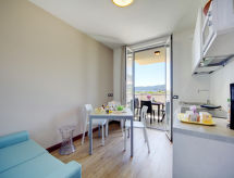 "Isolino (FON106)", 2-rums-lägenhet 28 m2, sydläge. Objekt passande för 2 vuxna + 1 barn. Praktiskt inredd: 1 rum med 2 sängar (85 cm). Kombinerat kök och vardagsrum (diskmaskin, 4 Induktionshäll, mikrovågsugn, elektrisk kaffemaskin) med 1 bäddsoffa, sat-TV och internationella TV-kanaler. Utgång till balkongen. Dusch/toalett. Uppvärmning. Balkong. Balkongmöbler. Utsikt på sjön. Till förfogande: kassaskåp, hög barnstol, barnsäng för barn under 2 år (extra). Internet (Trådlös LAN [WLAN] , gratis). CIR: 103072-CIM-00003- Kännetecken för boendet