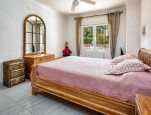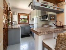 "Janine", 3-rums-hus 85 m2. Vackert och mysigt inrett: vardags-/matrum med öppen spis, sat-TV, digital-TV, stereoanläggning, luftkonditionering och varmluftsuppvärmning. Utgång till terrassen. 1 rum med 1 fransk säng (160 cm, längd 200 cm), dusch/toalett och fläkt. 1 rum med 1 fransk säng (2 x 90 cm, längd 190 cm), dusch/toalett och fläkt. Öppet kök (ugn, diskmaskin, 4 kokplattor - glaskeramikhäll, brödrost, vattenkokare, mikrovågsugn, frys, elektrisk kaffemaskin). Badkar/toalett. Stor terrass. Terrassmöbler, utegrill, vilstolar (4). Till förfogande: tvättmaskin, strykjärn, myggnät, barnsäng, hårtork. Internet (Trådlös LAN [WLAN] , gratis). Parkeringsplats. R000000001- Aktiviteter i närheten