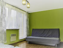 Komfortabelt parhus "Jantarowo", byggnadsår 1994, renoverat år 2013. Soligt läge, 2.6 km från havet, 2.6 km från stranden, i det gröna. För gemensamt bruk: tomt 640 m2 (inhägnad). Grillstuga, barnlekplats (rutschbana, sandlåda), parkering vid huset. Affär 6 km, livsmedelsaffär 400 m, stormarknad 6 km, restaurang, busshållplats 50 m, sandstrand 2.6 km. Ridstall 500 m. Notera: huvudgata i närheten. I denna semesteranläggning finns det fler bostäder att hyra.Interior
