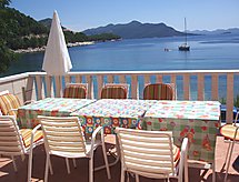 2-rums-lägenhet 40 m2 på 1. våningen, sydläge. 1 rum med 1 dubbelsäng, matbord, dusch/toalett, sat-TV och luftkonditionering. Utgång till terrassen. 1 rum med 1 dubbelsäng, matbord, dusch/toalett och luftkonditionering. Utgång till terrassen. Kök (2 kokplattor). Terrass 20 m2, sydläge. Terrassmöbler. Härlig utsikt på havet och orten. Till förfogande: Internet (Trådlös LAN [WLAN] , gratis). 1 husdjur/hund tillåtet.- Utrustning