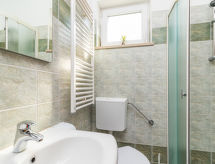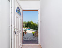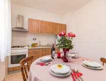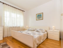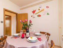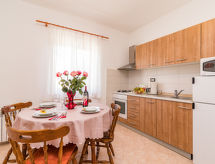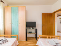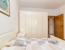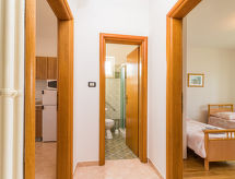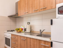 2-rums-lägenhet 50 m2, på bottenvåningen, norrläge. Ingång med luftkonditionering. 1 rum 15 m2 med 1 dubbelsäng (2 x 90 cm, längd 200 cm). 1 rum 15 m2 med 2 sängar (90 cm, längd 200 cm), sat-TV. Matrum 15 m2. Öppet kök (2 kokplattor, ugn, 2 gasflammor, brödrost, vattenkokare, mikrovågsugn, frys, elektrisk kaffemaskin). Dusch/toalett. Terrass 30 m2. Terrassmöbler. Utsikt på swimming-poolen. Till förfogande: tvättmaskin, strykjärn. Internet (Trådlös LAN [WLAN] , gratis). Notera: lägenhet mot gården. Rökfri lägenhet. Brandsläckare.- Utrustning