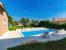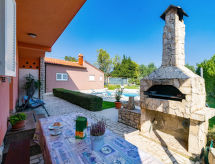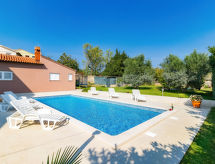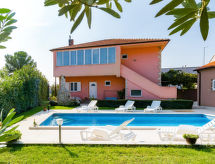 3-familjshus "Jere". I ortsdelen Kaštanjer 1 km från centrumet av Pula, 3 km från havet, 3 km från stranden. För gemensamt bruk: tomt 1'300 m2 (inhägnad), gräsmatta och planteringar, pool kantig (10 x 4 m, 150 cm djup, tillgång säsongsbunden: 15.Maj. - 15.Okt.) med innertrappor. Utedusch, utegrill. I huset: internetanslutning, trampolin. Flygplatstransfer (extra). Parkering vid huset på tomten. Affär, stormarknad, restaurang 200 m, café, busshållplats 100 m, grusstrand 3 km, strand vid klippor 3 km, betongbelagd strand 3 km. Lekplats 30 m. Notera: flygplats 5 km från huset.Interior
