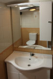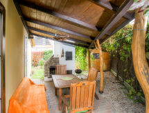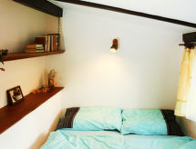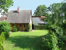 3-rums-hus 60 m2 med 2 våningar. Vackert och rustikt inrett: vardags-/matrum med matbord och sat-TV. Utgång till terrassen. 1 rum med 1 dubbelsäng. Öppet kök (2 kokplattor, brödrost, vattenkokare, mikrovågsugn, elektrisk kaffemaskin). Dusch/toalett. Veduppvärmning. Övre våning: (brant trappa) 1 rum med snedtak med 1 säng och 1 dubbelsäng (150 cm). Terrass. Terrassmöbler, utegrill. Till förfogande: hög barnstol. Internet (Trådlös LAN [WLAN] , gratis). Notera: rökfri lägenhet. Max 1 litet husdjur/hund tillåtet.- Utrustning