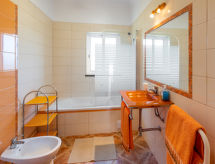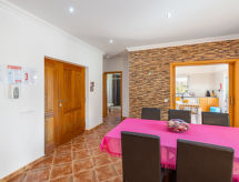 "Casa Joaquim", 4-rums-hus 115 m2 med 2 våningar. Ljus, modernt inrett: vardags-/matrum med öppen spis, matbord, sat-TV och DVD. Utgång till terrassen. 1 rum med 2 sängar (90 cm, längd 195 cm). Utgång till terrassen. Kök (ugn, diskmaskin, 4 kokplattor - glaskeramikhäll, brödrost, vattenkokare, mikrovågsugn, frys, elektrisk kaffemaskin) med matbord. Dusch/toalett. Eluppvärmning, luftkonditionering. Värme finns inte i alla rum. Övre våning: 1 rum med 1 dubbelsäng (160 cm, längd 200 cm). Utgång till balkongen. 1 rum med 2 sängar (90 cm, längd 195 cm). Utgång till balkongen. Badkar/toalett, dusch/toalett. 2 balkonger 13 m2, balkong 9 m2, terrass 135 m2, terrass 70 m2. Terrassmöbler, utegrill, vilstolar (6). Till förfogande: tvättmaskin, kassaskåp, strykjärn, hög barnstol, barnsäng, hårtork. Internet (Trådlös LAN [WLAN] , gratis). Notera: rökfritt hus. Brandvarnare, brandsläckare. 25818/AL- Kännetecken för boendet