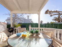 "JUAN", 4-rums-hus. Komfortabelt och mysigt inrett: vardags-/matrum med matbord och TV. Utgång till terrassen, till trädgårdssittplatsen, till swimmingpoolen. 1 rum med 1 fransk säng. 2 rum, till varje rum hör 2 sängar. Öppet kök (4 kokplattor, ugn, mikrovågsugn, elektrisk kaffemaskin). Dusch/toalett. Luftkonditionering, varmluftsuppvärmning. Terrassmöbler, loggia. På swimming-poolen. Till förfogande: tvättmaskin. Internet (Trådlös LAN [WLAN] ). Parkeringsplats vid huset. Lämpligt för barnfamiljer. 2 husdjur/hundar tillåtna. HUTTE003224- Utrustning