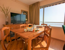 "Junto al mar", 3-rums-lägenhet 75 m2. Objekt passande för 4 vuxna. Ljus, praktiskt och komfortabelt inredd: vardags-/matrum 20 m2 med digital-TV och luftkonditionering. Utgång till loggian. 1 rum 9 m2 med 1 fransk säng (1 x 135 cm, längd 190 cm). 1 rum 9 m2 med 2 sängar (90 cm, längd 190 cm). Kök (ugn, diskmaskin, 4 kokplattor - glaskeramikhäll, brödrost, vattenkokare, mikrovågsugn, frys, elektrisk kaffemaskin). Badkar/toalett. Eluppvärmning, luftkonditionering. Terrass 25 m2. Terrassmöbler. Utsikt på havet och orten. Till förfogande: tvättmaskin, strykjärn, hög barnstol, barnsäng för barn under 2 år, hårtork. Internet (Trådlös LAN [WLAN] , gratis). Parkeringsplats nr S/N. 1 litet husdjur/hund tillåtet. VT-323823-BM- Utrustning