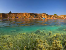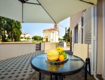 2-rums-lägenhet 40 m2, på bottenvåningen, nordvästläge. Vardags-/matrum 20 m2 med 1 bäddsoffa för 2 personer (140 cm, längd 200 cm), sat-TV (flatscreen TV), luftkonditionering. Utgång till terrassen. 1 rum med 1 dubbelsäng (2 x 90 cm, längd 200 cm). Öppet kök (ugn, 4 kokplattor - glaskeramikhäll, frys, elektrisk kaffemaskin). Dusch/toalett. Terrass 28 m2. Terrassmöbler. Till förfogande: tvättmaskin. Internet (Trådlös LAN [WLAN] , gratis). 1 husdjur/hund tillåtet.- Utrustning