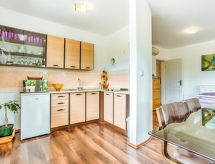 Ika 4 km från Opatija: 3-familjshus "Karmen". 1.3 km från centrumet av Ika, 1.5 km från centrumet av Lovran, lugnt, soligt, upphöjt läge, område med lite trafik, 1.2 km från havet, 1.2 km från stranden, i en återvändsgränd, i det gröna. För gemensamt bruk: tomt 1'200 m2, trädgård med gräsmatta 700 m2, blommor, pool (6 x 3 m, 22 m2, 120 cm djup, tillgång säsongsbunden: 11.Maj. - 21.Sep.). Berså (20 m2), trädgårdsmöbler, utegrill, grillstuga. I huset: internetanslutning. Tillfart ända fram till till huset (50 m naturväg). Parkering vid huset på tomten. Affär 750 m, livsmedelsaffär 1.6 km, restaurang 1.1 km, bar 1.3 km, café 1.3 km, grusstrand 1.1 km, strand vid klippor 1.1 km, badanläggning vid stranden 1.1 km. Tennis 850 m.Interior