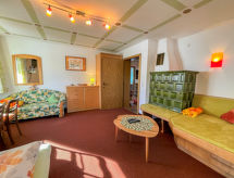 "Karwendel", 2-rums-lägenhet 86 m2, på bottenvåningen. Mysigt inredd: ingång. 1 rum med 1 säng och 1 dubbelsäng. Vardags-/sovrum med 1 bäddsoffa för 2 personer, sat-TV, DVD och kakelugn. Utgång till balkongen. Kombinerat kök och vardagsrum (ugn, diskmaskin, 4 kokplattor - glaskeramikhäll, brödrost, vattenkokare, mikrovågsugn, elektrisk kaffemaskin) med matvrå, radio, CD och vedugn. Utgång till balkongen. Badkar/dusch, sep. Toalett. Balkong 8 m2. Terrassmöbler, förråd. Härlig panoramautsikt på bergen och landskapet. Till förfogande: tvättmaskin, torktumlare, barnsäng, hårtork. Internet (Trådlös LAN [WLAN] , gratis).- Aktiviteter i närheten