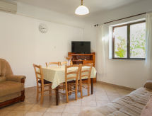 "Katarina (SNJ230)", 3-rums-lägenhet 70 m2 på 1. våningen. Vardags-/matrum med sat-TV, vedugn och luftkonditionering. 1 rum med 1 säng och 1 dubbelsäng. Utgång till balkongen. 1 rum med 1 dubbelsäng. Utgång till balkongen. Öppet kök (4 kokplattor, ugn, diskmaskin, brödrost, vattenkokare, frys, elektrisk kaffemaskin). Dusch/toalett. Veduppvärmning, luftkonditionering (extra). Balkong, terrass täckt. Terrassmöbler, balkongmöbler, utegrill. Utsikt på havet. Till förfogande: tvättmaskin, ved (gratis). Internet (Trådlös LAN [WLAN] , gratis). Max 2 husdjur/hundar tillåtna.- Utrustning